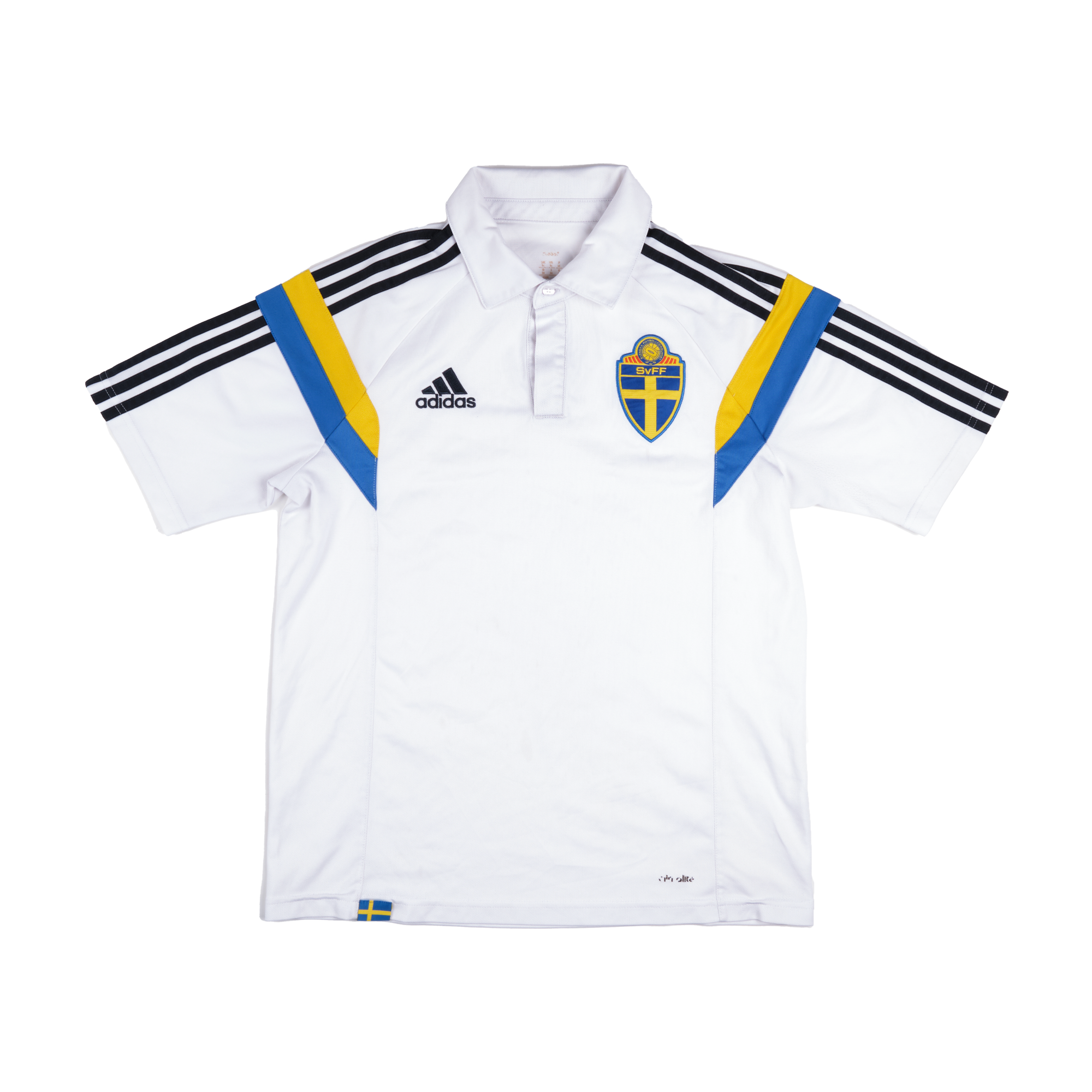 Worn during the 2014–15 cycle as part of Sweden's national team apparel, this adidas polo served between World Cup and Euro qualifiers with Zlatan Ibrahimović captaining the side.